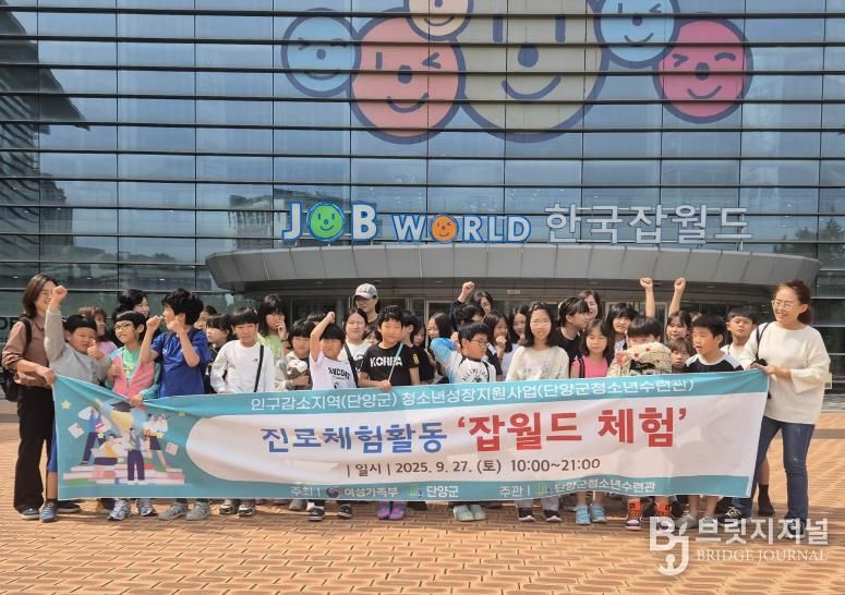 브릿지저널 김경미 기자 | 충북 단양군 청소년수련관은 지난 9월 27일 초등학생 37명을 대상으로 경기 성남시에 위치한 ‘한국잡월드’를 방문해 인구감소지역 청소년 성장지원사업의 일환인 진로체험활동을 운영했다고 밝혔다.
