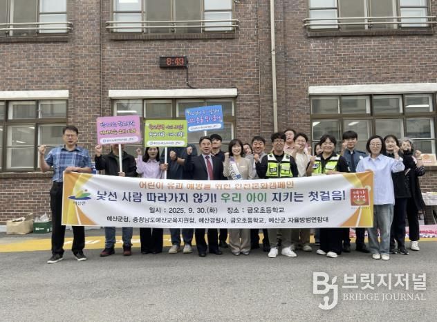 브릿지저널 정보영 기자 | 예산군은 최근 전국에서 발생하고 있는 초등학생 대상 유괴 사건을 예방하고 학생과 학부모의 불안을 해소하기 위해 지난달 30일 금오초등학교 일원에서 어린이 유괴 예방 안전문화 캠페인을 실시했다고 밝혔다.