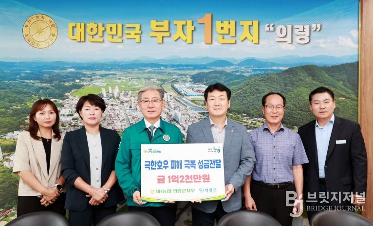 브릿지저널 김경미 기자 | 의령군은 최근 집중호우로 큰 피해를 입은 지역의 복구를 돕기 위해 NH농협 의령군지부가 성금 1억2천만원을 기탁했다고 1일 밝혔다.