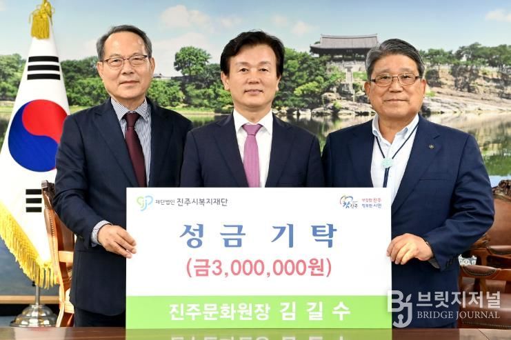 브릿지저널 김경미 기자 | 진주문화원 김길수 원장은 지난 9월 30일 기업인의 방에서 지역사회 어려운 이웃돕기 성금 300만 원을 진주시복지재단에 기탁했다.