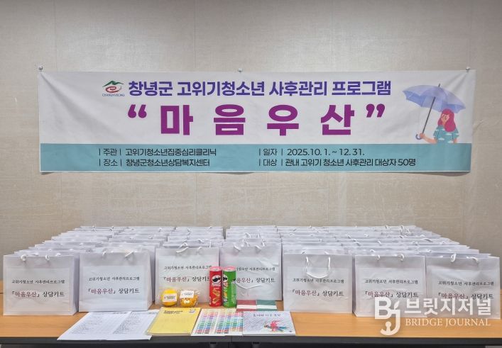브릿지저널 김경미 기자 | 창녕군청소년상담복지센터(센터장·노인여성아동과장 김선희)는 자살 생각이나 습관적 자해 등으로 어려움을 겪는 고위기 청소년 50명을 대상으로 오는 12월 말까지 상담키트를 전달할 계획이라고 밝혔다.