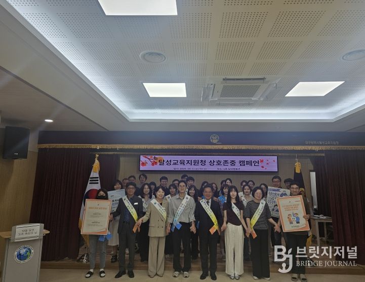 브릿지저널 김진석 기자 | 대구달성교육지원청은 10월 1일 달성교육지원청 전 직원을 대상으로 직장 내 상호존중 문화 확산과 갑질 예방을 위한 캠페인을 실시했다.
