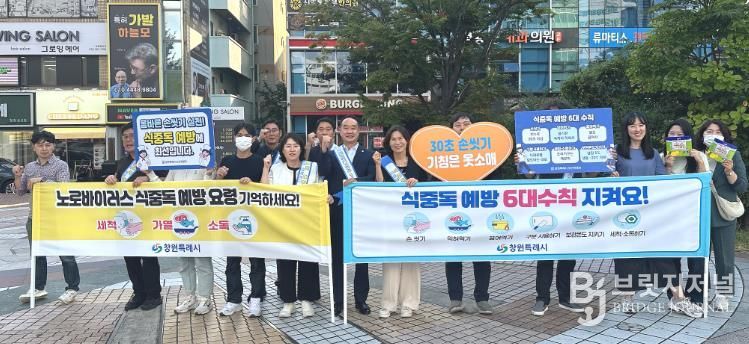 브릿지저널 김경미 기자 | 창원특례시는 식중독 예방을 위하여 9월 30일 창원시 정우상가 일대에서 시청, 의창구·성산구 외식업지부와 합동하여 시민들을 대상으로 식중독 예방 캠페인을 실시했다고 밝혔다.