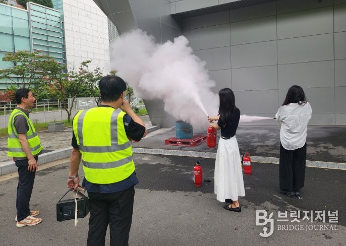 3층 전시장 하역장에 화재 상황을 가정하여 화재 발생 사실 전파, 초기 진압, 인명 대피, 응급 처치까지 이어지는 전 과정에 현장 대응력을 높였으며, 소화기·소화전·심폐소생술 실습도 병행했다.