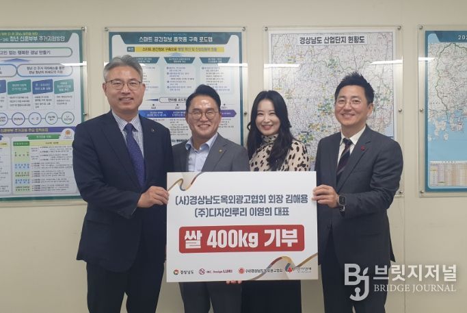 브릿지저널 김경미 기자 | 경상남도는 1일 도청에서 (사)경상남도옥외광고협회, ㈜디자인루리와 이웃돕기 성금·물품 전달식을 개최했다고 밝혔다.