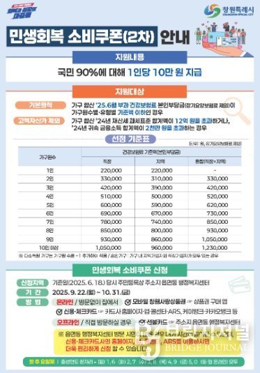 브릿지저널 김경미 기자 | 창원특례시는 추석 명절을 앞두고 민생회복 소비쿠폰 2차 지급을 통해 지역경제에 활력을 불어넣고 소상공인들에게 힘을 보내고 있다. 이번 2차 지급 대상은 총 91만 5,548명으로, 9월 22일부터 지급이 시작된 지 며칠 만에 벌써 84.5%에 해당하는 77만 3,719명이 발급받아 시민들의 높은 관심을 입증했다.