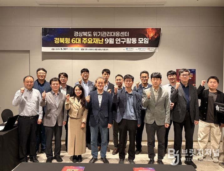 브릿지저널 정보영 기자 | 경상북도 위기관리대응센터는 9월 30일 안동 스탠포드호텔에서 ‘경북형 6대 주요 재난 9월 연구 활동 모임’을 개최하고, 경북을 위협하는 재난에 대한 심도 있는 논의를 진행했다.