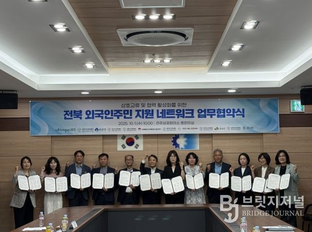 브릿지저널 윤나영 기자 | 전북국제협력진흥원은 오늘인 10월 1일, 전주상공회의소 중회의실에서 도내 외국인지원센터 운영기관들과 함께 '전북 외국인주민 지원 네트워크 협약'을 체결했다고 밝혔다.