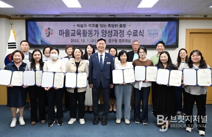 브릿지저널 정보영 기자 | 대전 중구는 1일 중구청 중회의실에서 행복이음교육지구 사업으로 추진한 ‘2025년 중구 마을교육활동가 양성과정’을 마무리하고 수료식을 개최했다고 밝혔다.