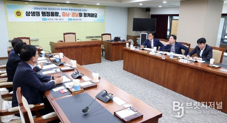 브릿지저널 정보영 기자 | 충남도의회 ‘충남대전 행정통합 특별위원회’는 1일 충남도의회 회의실에서 경남도의회 ‘경남부산 행정통합 특별위원회’와 합동 간담회를 개최했다.