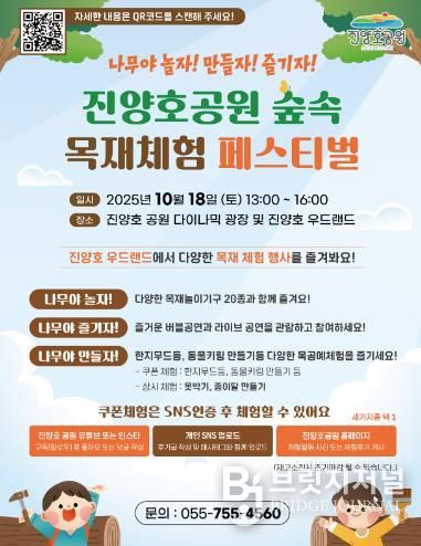 브릿지저널 김경미 기자 | 진주시는 오는 10월 18일 오후 1시부터 4시까지 진양호공원 다이나믹 광장과 진양호우드랜드 일원에서 『나무야 놀자! 만들자! 즐기자! 진양호 공원 숲속 목재체험 페스티벌』을 개최한다.
