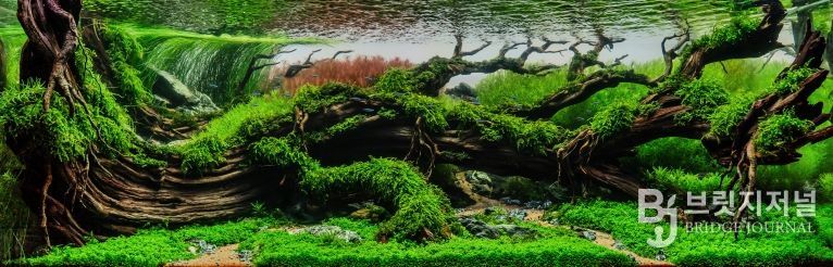 특히 지리산 자락 계곡의 흐름과 유려한 형상의 나무들에 영감을 받아 수조 안을 재현해 국내 출품작 중 가장 좋은 평가를 받았다.