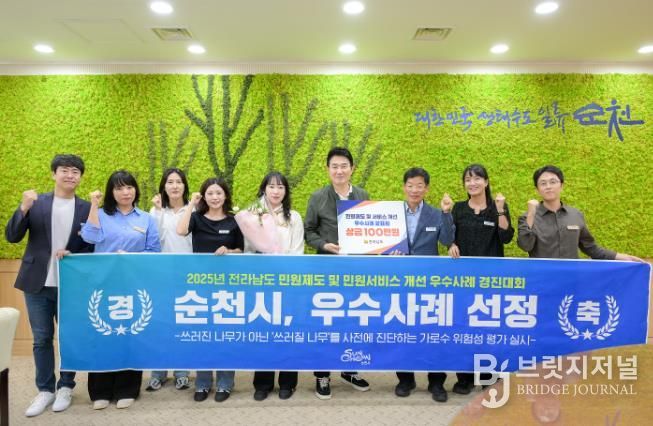 브릿지저널 김경미 기자 | 순천시가 전라남도 도민행복소통실에서 주관한 '2025년 민원제도 개선 우수사례' 공모에서 우수사례로 선정되어, 지난 1일 시상식 및 사례발표를 진행했다.