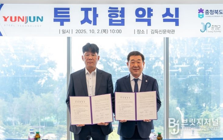 브릿지저널 김경미 기자 | 충북 증평군은 2일 김득신문학관에서 충북도, ㈜윤준에스티(대표이사 김태수)와 증평3일반산업단지 내 공장을 신설하는 투자협약(MOU)을 체결했다.