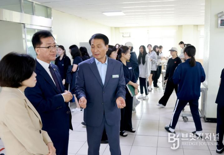 브릿지저널 정보영 기자 | 대전시의회 조원휘 의장은 이금선 교육위원장과 함께 2일 대전둔산여자고등학교를 방문해 학교․교육청 관계자로부터 학교급식 운영 상황을 보고받았다.