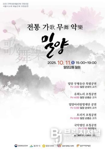 밀양시 관계자는 “전통예술의 감동을 함께 나누고, 우리 문화의 아름다움을 더욱 공유하는 시간이 될 것으로 기대한다”라며 “앞으로 밀양이 전통과 현대, 세대와 지역을 잇는 소통과 협업의 중심지가 되어, 문화예술의 지속 가능한 발전을 선도해 나가겠다”라고 말했다.