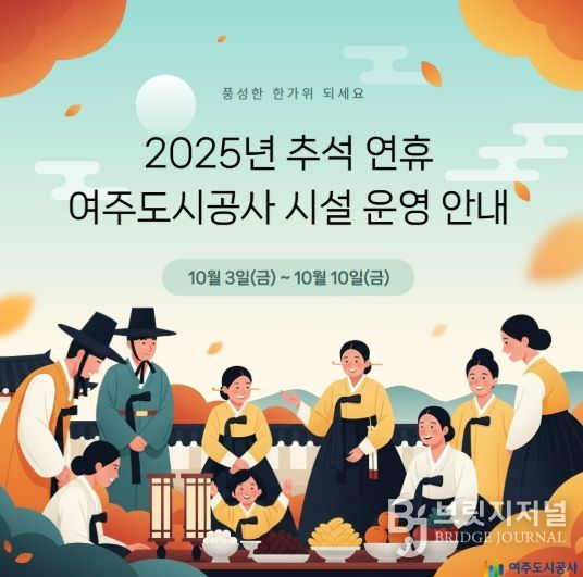 브릿지저널 김경미 기자 | 여주도시공사는 2025년 추석 명절을 맞아 고향을 찾는 귀성객과 시민들의 편의를 위해 주요 시설 운영시간 조정, 무료개방 등 특별 서비스를 제공한다고 2일 밝혔다.