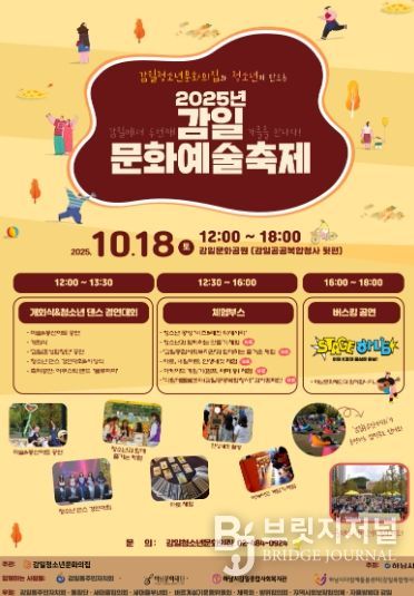 브릿지저널 김경미 기자 | 하남시 감일청소년문화의집은 오는 10월 18일 오후 12시부터 18시까지 감일문화공원(감일공공복합청사 뒷편)에서 '제2회 감일문화예술축제'를 개최한다.