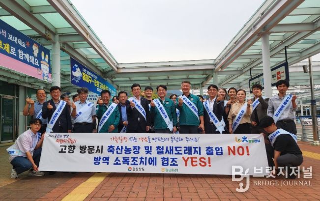 브릿지저널 김경미 기자 | 경상남도는 2일 추석 연휴를 앞두고 귀성객 대규모 이동에 대비하여 창원중앙역에서 경남도, 창원시 가축방역 공무원과 경남농협이 함께 참여해 가축방역 홍보 캠페인을 실시했다고 밝혔다.
