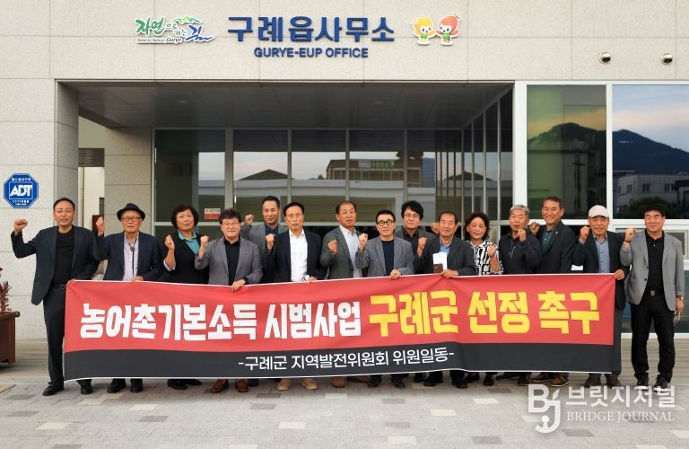 브릿지저널 김경미 기자 | 전남 구례군지역발전위원회(위원장 장석우)는 지난 1일 구례읍사무소에서 정부가 추진하는 농어촌기본소득 시범사업 대상지로 구례군을 선정할 것을 강력히 촉구했다.