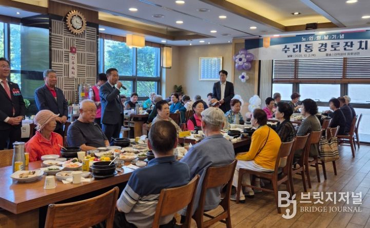 브릿지저널 김경미 기자 | 군포시 수리동 주민자치회(회장 고진해)는 제29회 노인의 날을 맞아 지난 10월 2일 수리동 어르신들을 대상으로 경로잔치를 개최했다. 이번 행사는 하은호 군포시장, 이학영 국회부의장 등 여러 내빈과 수리동 직능단체장들이 어르신 100여 명과 뜻깊은 자리를 함께했다.