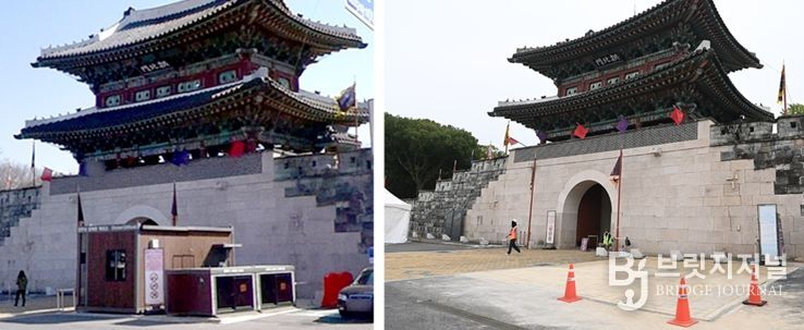 브릿지저널 김경미 기자 | 진주시는 1일 진주성 공북문 앞을 가로막아 시각적으로 조화롭지 못했던 매표소를 기존 관광안내소 옆으로 이전 설치하여 진주성 성벽과 공북문 경관을 회복했다고 밝혔다.