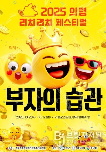 브릿지저널 김경미 기자 | 경남 의령에서 대한민국 유일무이한 부자 축제인 ‘2025 의령리치리치페스티벌’이 10월 9일부터 12일까지 열린다.