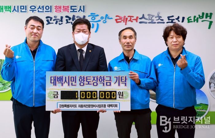 브릿지저널 윤나영 기자 | 태백시는 지난 2일 강원특별자치도 자동차전문정비사업조합 태백지회가 지역 인재 육성을 위해 장학금 100만 원을 (재)태백시민향토장학회에 기탁했다고 밝혔다.