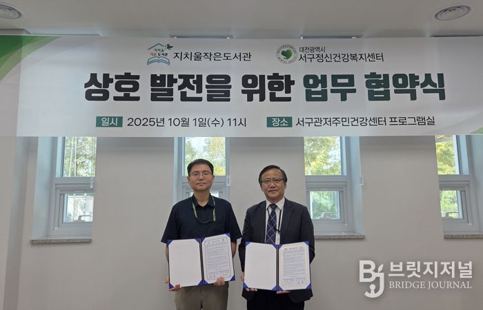브릿지저널 정보영 기자 | 대전 서구 평생학습원 지치울작은도서관과 서구정신건강복지센터는 상호 협력과 공동 발전을 위한 업무협약을 체결했다.
