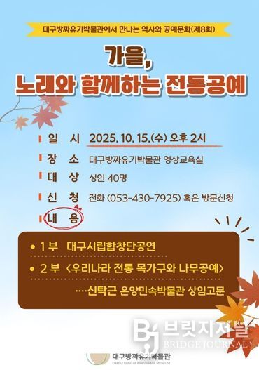 브릿지저널 김진석 기자 | (재)대구문화예술진흥원 박물관운영본부 소속 대구방짜유기박물관은 10월에도 전통공예와 함께하는 프로그램을 운영한다.