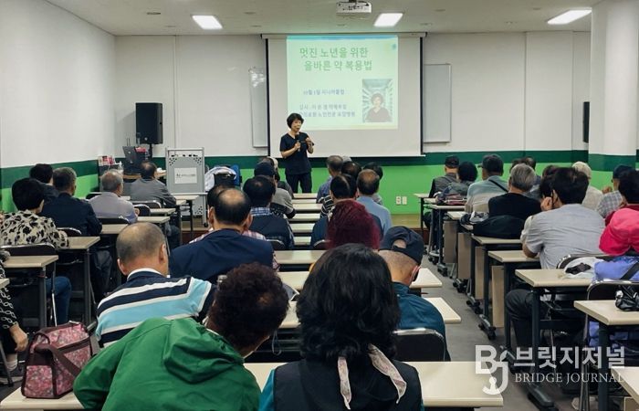 이은경 약사는 30여 년의 현장 경험을 바탕으로 고혈압·당뇨병 치료제의 올바른 복용법, 음식과의 상호작용, 주의해야 할 복용 사례, 약물 오남용 실제 사례 등을 설명하며, 어르신들이 일상에서 바로 실천할 수 있는 실질적인 복약 지침을 제공했다.