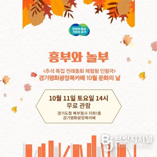 브릿지저널 김경미 기자 | 경기도가 오는 10월 11일 경기평화광장 북카페 원형무대에서 추석 연휴를 맞아 전래동화 인형극 공연 ‘흥부와 놀부’를 공연한다. 이번 행사는 ‘10월 문화의 날’ 프로그램으로, 도민에게 명절의 의미를 되새기고 가족과 함께하는 특별한 시간을 제공하기 위해 기획됐다.