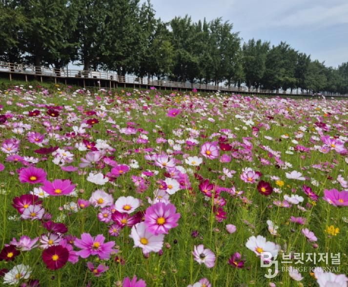 브릿지저널 정보영 기자 | 아산시가 곡교천 방문객에게 휴식공간과 볼거리를 제공하기 위해 조성한 ‘곡교천 가을 초화원’이 가을꽃으로 아름답게 물들었다고 밝혔다.
