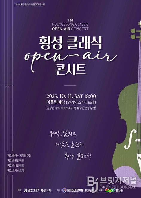 브릿지저널 윤나영 기자 | 횡성군민에게 깊은 음악적 감동을 선사할 ‘제1회 횡성 클래식 오픈에어 콘서트’가 오는 11일 오후 6시, 횡성 어울림마당(인라인스케이트장)에서 열린다.