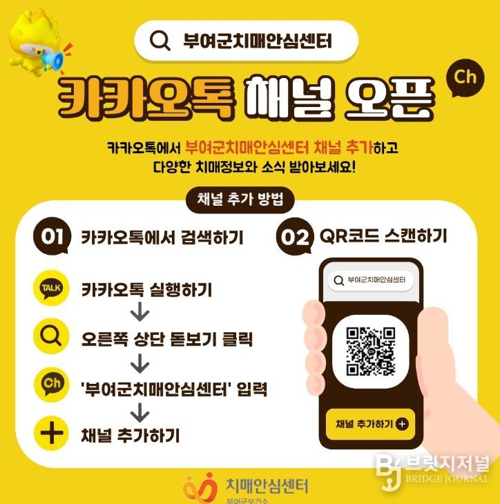 관련 문의는 새롭게 개설된 카카오톡 채널 또는 부여군보건소 치매관리팀을 통해 가능하다.