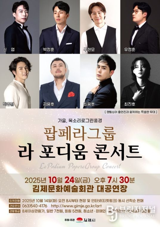 브릿지저널 윤나영 기자 | 깊어 가는 가을, 특별한 음악의 향연 팝페라 그룹'라 포디움 콘서트'가 오는 24일 오후 7시 30분 김제문화예술회관 대공연장에서 펼쳐진다.
