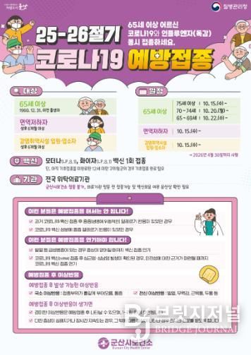 브릿지저널 윤나영 기자 | 군산시가 오는 10월 15일부터 인플루엔자와 코로나19 예방접종을 실시한다.