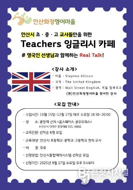 브릿지저널 김경미 기자 | 안산시 안산화정영어마을은 오는 15일부터 12월 17일까지 관내 소속 교사를 대상으로 ‘티처스(Teachers) 잉글리시 카페’를 운영한다고 10일 밝혔다.