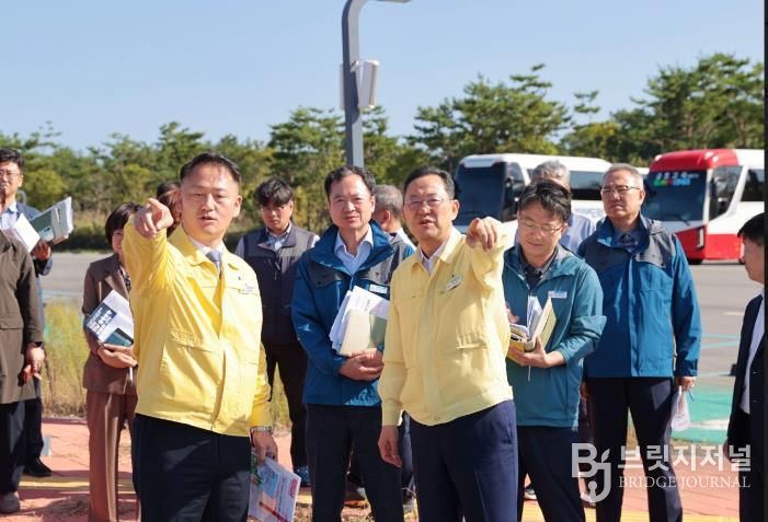 명현관 군수는 10일 대회기간 임시주차장이 운영될 산이면 구성리 솔라시도기업도시에서 현장 보고회를 갖고, 대회 준비 사항을 점검했다.