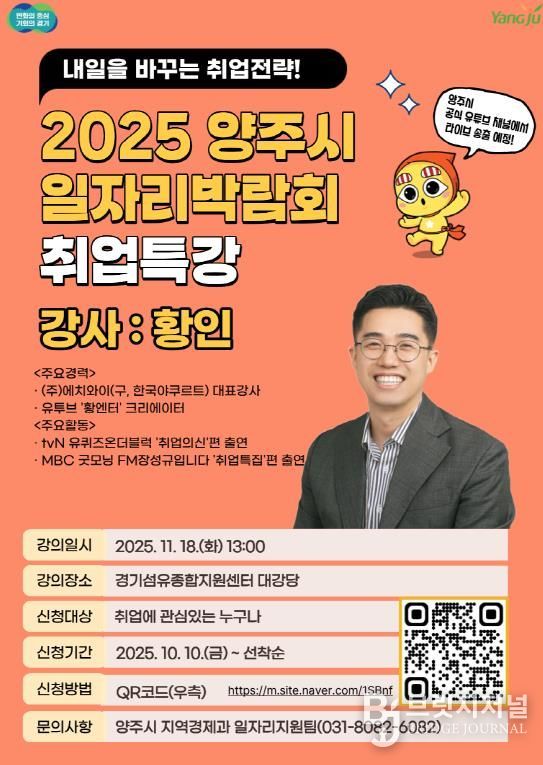 브릿지저널 김경미 기자 | 양주시가 오는 11월 18일 오후 1시, 경기섬유종합지원센터 대강당(지하 1층)에서 ‘2025 양주시 일자리박람회 취업특강’을 개최한다.