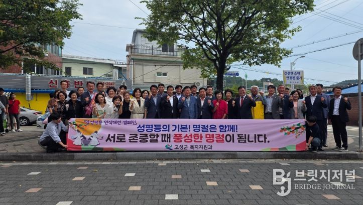 브릿지저널 김경미 기자 | 고성군은 10월 2일 고성군 전통시장 일원에서 고성군여성단체협의회(회장 최외숙) 회원 10여 명과 함께 ‘성평등의 기본! 명절은 함께! 서로 존중할 때 풍성한 명절이 됩니다’라는 주제로 군민 대상 양성평등 인식개선 캠페인을 전개했다.