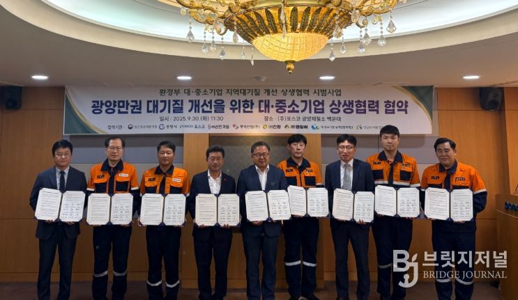브릿지저널 김경미 기자 | 전남녹색환경지원센터는 9월 30일 ㈜포스코 광양제철소 백운대에서 ‘광양만권 대기질 개선을 위한 대·중소기업 상생협력 협약’을 체결했다.
