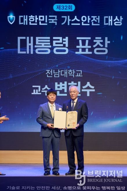 브릿지저널 김경미 기자 | 전남대학교 화공생명공학과 변헌수 교수가 산업통상자원부에서 주최하고 한국가스안전공사(사장 박경국)가 주관한 ‘제32회 대한민국 가스안전 대상’에서 대통령 표창의 영예를 안았다.
