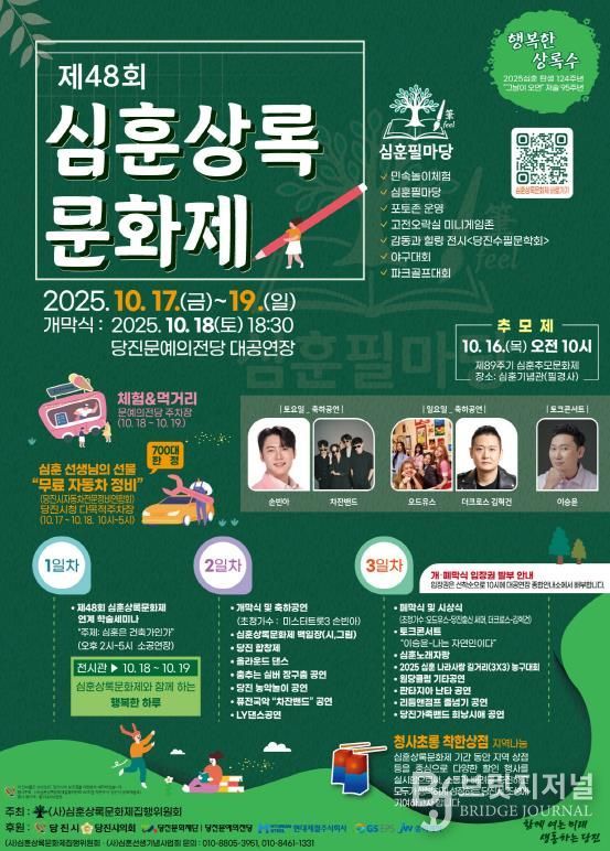 브릿지저널 정보영 기자 | 당진시는 제48회 심훈상록문화제가 10월 17일부터 19일까지 사흘간 당진문예의전당 일원에서 열린다고 13일 밝혔다.