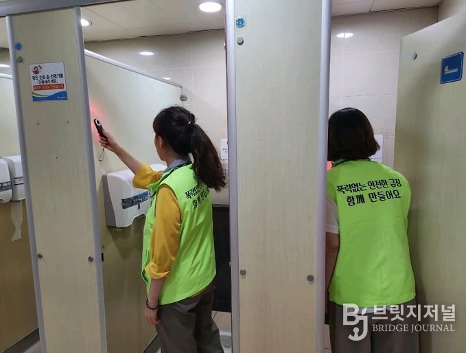 브릿지저널 윤나영 기자 | 부산시 금정구는 지난 10월 1일 오후 2시부터 4시까지 장전역과 부산대역 공중화장실을 대상으로 불법촬영기기 설치 여부에 대한 합동점검을 실시하고, 디지털 성범죄 예방 및 불법 촬영 근절을 위한 홍보 캠페인을 전개했다.