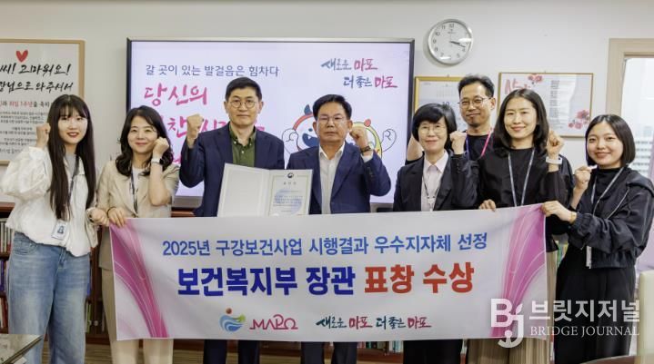 브릿지저널 김경미 기자 | 마포구는 지난달 26일, 보건복지부와 한국건강증진개발원이 주관한 ‘2025년 지역사회 구강보건사업 성과대회’에서 우수기관으로 선정돼 보건복지부 장관상을 수상했다.
