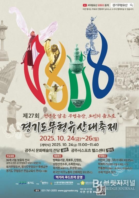 브릿지저널 김경미 기자 | 광주시는 오는 24일부터 26일까지 3일간, 광주시문화예술의 전당 및 스포츠센터, 야외광장 일원에서 ‘제27회 경기도무형유산대축제’를 개최한다고 13일 밝혔다.