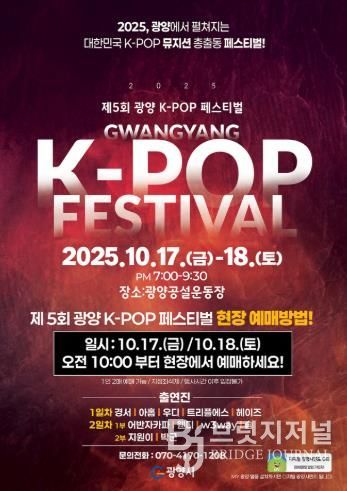 브릿지저널 김경미 기자 | 제5회 광양 K-POP 페스티벌이 오는 17일과 18일, 광양공설운동장 일원에서 전국 청소년 댄스 경연대회와 함께 화려한 라인업으로 성대하게 개최된다.