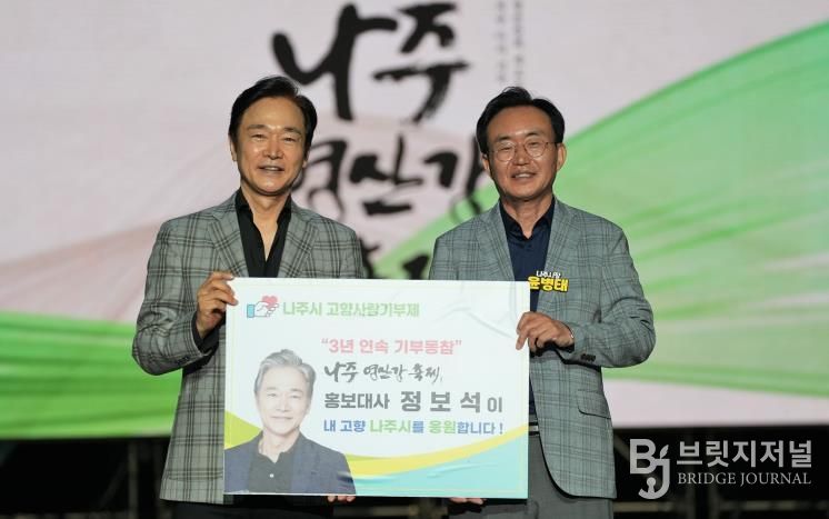 브릿지저널 김경미 기자 | ‘나주영산강축제’의 성공 개최를 위해 지난 2024년부터 2년 연속 나주영산강축제 홍보대사로 활약하고 있는 국민배우 정보석 씨가 고향 발전을 위해 3년째 고향사랑기부금을 기탁했다.