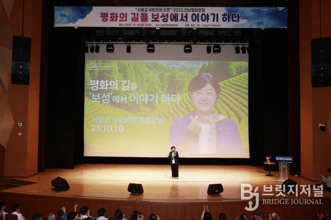 브릿지저널 김경미 기자 | 보성군은 지난 10일 보성군문화예술회관에서 개최된 ‘서영교 국회의원 초청 2025 전남평화포럼’이 군민 700여 명이 참석한 가운데 성황리에 마무리됐다고 밝혔다.